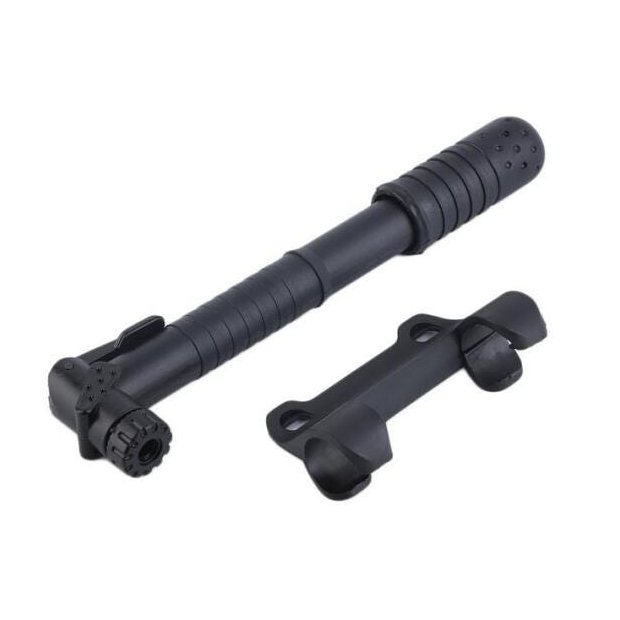 Cilindro em plástico de alta resistência 6063 para válvulas Presta (grossa) ou Scharader (fino). Alta pressão nas duas vidas. Trava para bloqueio da válvula. Pressão máxima 100psi. Acompanha suporte.