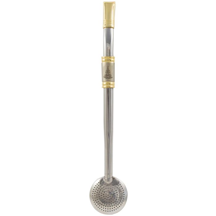 Bomba de Chimarrão Aço Inox Banho Ouro 18k Nossa Senhora Aparecida