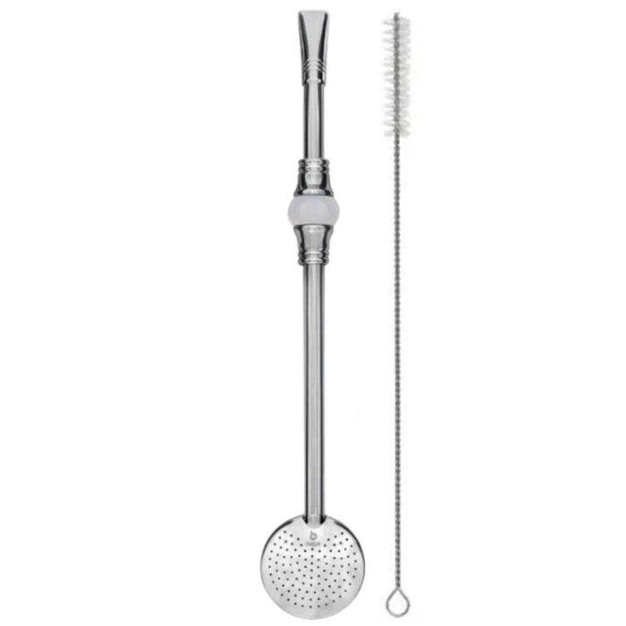 Bomba de Chimarrão Inox 23cm Anel Pérola Bojo Mil Furos Removível Erva Mate Inox