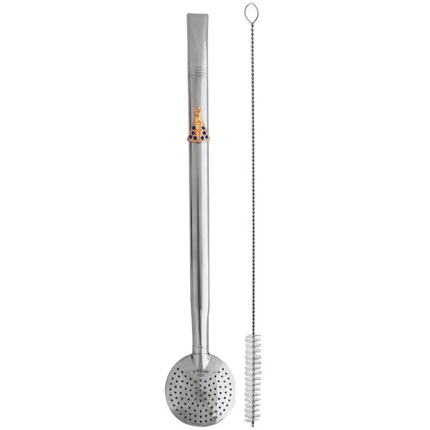 Bomba de Chimarrão Tereré Aço Inox 23cm com Rosca Pingente Nossa Senhora Inox