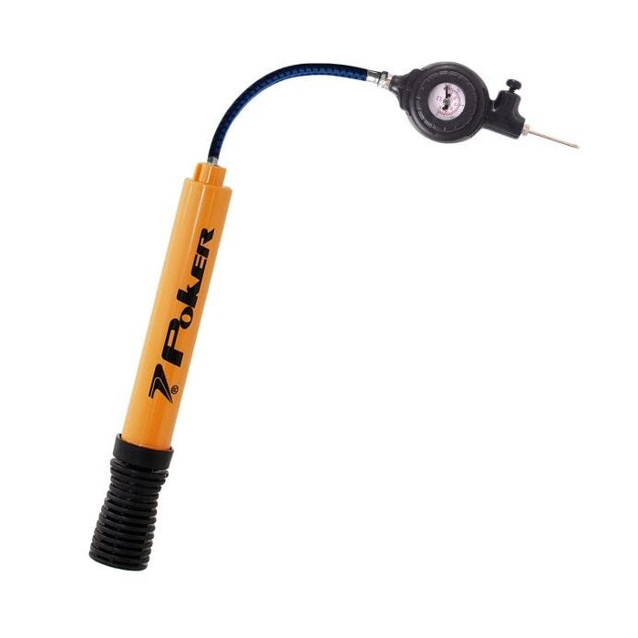 KIT SERÁ ENVIADO COM UMA BOMBA DUPLA AÇÃO E UM CALIBRADOR DE ACOPLAGEM BOMABA DUPLA AÇÃO: Um dos melhores produtos do mercado (custo benefício) A Bomba de Ar Poker possui sistema Double Action que tem ação de inflar nos dois sentidos e uma câmara de ar maior, que proporciona um enchimento mais rápido e com uma excelente pressão de ar. Com agulhas rosqueáveis e prolongador flexível e retrátil a é ideal para bolas de futebol, basquete, handebol e também para bicicletas, assim você poderá manter a durabilidade dos seus produtos que necessitam ser inflados e ainda terá um produto com toda a qualidade Poker. Fabricado com plastico rigido e de alta resistência. Possui uma mangueira flexível, para faciliar o ajuste. Além de vir acompanhado de 2 agulhas. Origem: Importado Contém 1 Bomba e 2 agulhas. CALIBRADOR: Para acoplar na Bomba. Se conecta a todo ipo de bombas. Enche e calibra ao mesmo tempo. Muito Prático. Com medidor de pressão para todos os tipos de bolas e pneus. EMBALAGEM/VENDA: Peça. Obs. Não acompanha bomba