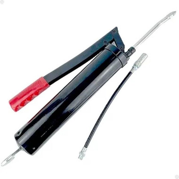 Bomba Manual Engraxar Alavanca Alta Pressão Graxa Máquinas Bomba de Engraxar Manual com Alavanca – Aplicação Precisa de Graxa em Máquinas e Equipamentos Descrição do Produto: Mantenha suas máquinas, veículos e equipamentos sempre bem lubrificados e em pleno funcionamento com a Bomba de Engraxar Manual com Alavanca. Projetada para facilitar a aplicação de graxa de maneira precisa e eficiente, esta ferramenta é ideal para oficinas, fazendas, garagens e qualquer ambiente industrial ou automotivo que necessite de lubrificação regular. Principais Vantagens: Design Robusto e Durável: Fabricada com materiais de alta qualidade, esta bomba de engraxar possui uma construção resistente, capaz de suportar o uso intenso e as condições mais exigentes. O corpo metálico é projetado para durabilidade, garantindo que a ferramenta resista ao desgaste e à corrosão. Aplicação Precisa de Graxa: Com uma alavanca de fácil acionamento e um sistema de pressão eficiente, esta bomba permite a aplicação precisa da graxa, garantindo que ela alcance todos os pontos necessários. Ideal para lubrificação de rolamentos, engrenagens, pinos e outros componentes móveis. Mangueira Flexível e Extensão Rígida: A bomba acompanha uma mangueira flexível e uma extensão rígida, proporcionando versatilidade de uso e permitindo alcançar áreas de difícil acesso com facilidade. A mangueira flexível é ideal para áreas de acesso complicado, enquanto a extensão rígida permite precisão em espaços estreitos. Alça Antideslizante: A alavanca conta com uma alça ergonômica e antideslizante, proporcionando um manuseio confortável e seguro. Este detalhe facilita a aplicação, reduzindo o esforço necessário e aumentando a eficiência durante o trabalho. Alta Capacidade de Pressão: O mecanismo de alavanca é projetado para gerar alta pressão, garantindo que a graxa seja dispensada de forma consistente e eficiente. Isso torna a bomba de engraxar perfeita para tarefas que exigem lubrificação regular e uniforme. Diferentes Opções de Uso: Oficinas Mecânicas e Garagens: Ideal para lubrificar componentes automotivos, como rolamentos, juntas e eixos. Mantém carros, caminhões e motocicletas funcionando suavemente e reduz o desgaste das peças móveis. Fazendas e Agricultura: Perfeita para manutenção de tratores, colheitadeiras, e outros equipamentos agrícolas que necessitam de lubrificação constante para garantir o melhor desempenho. Manutenção Industrial: Utilizada para lubrificar máquinas e equipamentos industriais, como esteiras transportadoras, prensas, motores elétricos e outros dispositivos que precisam de lubrificação frequente para operar de forma eficiente. Uso Doméstico e DIY: Também pode ser utilizada em casa para a manutenção de bicicletas, cortadores de grama, ferramentas manuais e outros equipamentos que requerem lubrificação. Ambientes Marítimos: A bomba de engraxar é adequada para a manutenção de barcos e embarcações, especialmente para lubrificação de componentes sujeitos a umidade e salinidade.