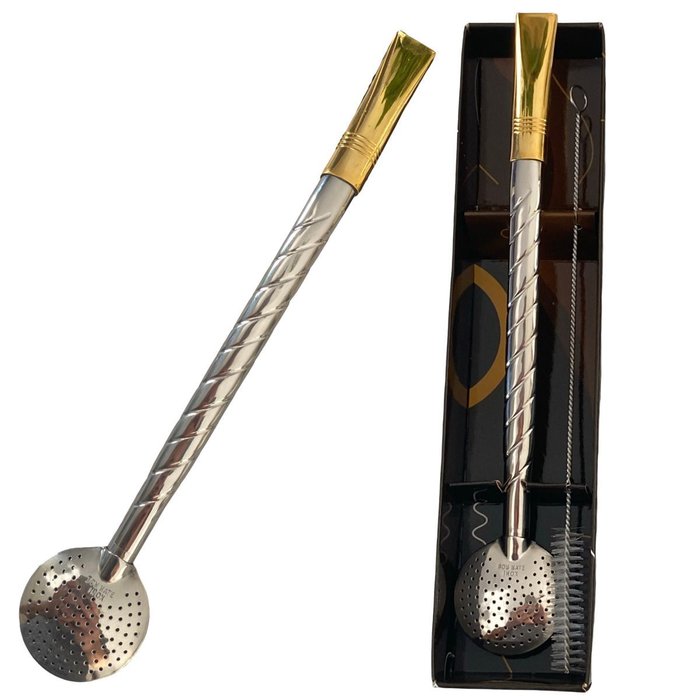Bomba para Chimarrão em Inox Premium com Bocal Banhado a Ouro 24K Mais sabor, mais estilo e mais durabilidade no seu chimarrão!