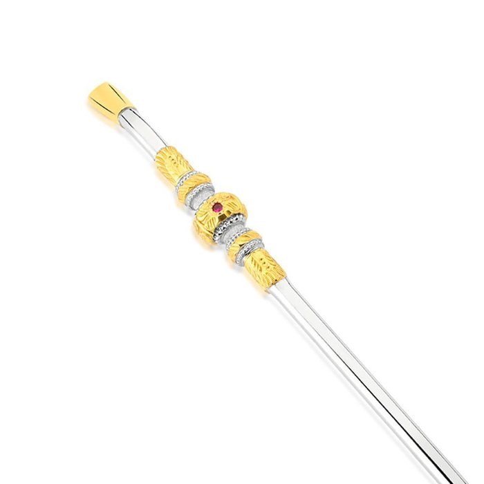 A bomba é produzida 100% em prata 600, metal nobre, seus detalhes são chapeados em ouro 12 Klt, literalmente uma lâmina de ouro! Método de fabricação aplicado para garantirmos a sua qualidade e durabilidade. A leveza ao se tomar o chimarrão é proporcionada através dos seus mais de 1000 furos no bojo, dessa forma mantém a pureza sem necessidade de nenhum tipo de filtro adicional.