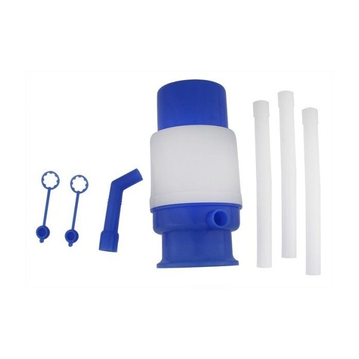 - Funcionamento simples: Basta encaixá-la na boca de um galão de água de 10 ou 20 litros, sem ter a necessidade de virá-lo. O acionamento da bomba é feito a partir de um botão acionador na parte superior.