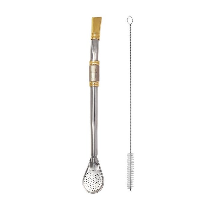Bomba Para Mate Chimarrão ou Terere 24cm Inox Ouro 18k Pera Cuia