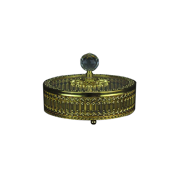 Bomboniere Potiche Decorativo Dourado em Metal e Cristal para decora a sua Mesa - 11x15x15cm