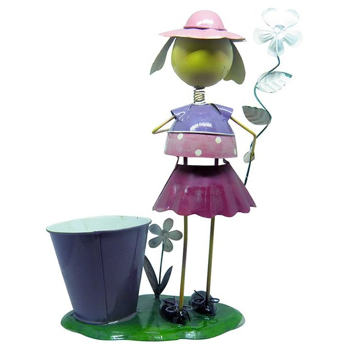 Os bonecos decorativos são feitos em ferro e têm pintura especial para ambientes externos, mas são tão lindos e divertidos que podem ficar tanto no jardim quanto dentro de casa, e ainda vem com um lindo suporte para vasos de flores. Um lindo enfeite para deixar o ambiente criativo e charmoso. Ideal para um quarto infantil ou até mesmo para seu escritório.