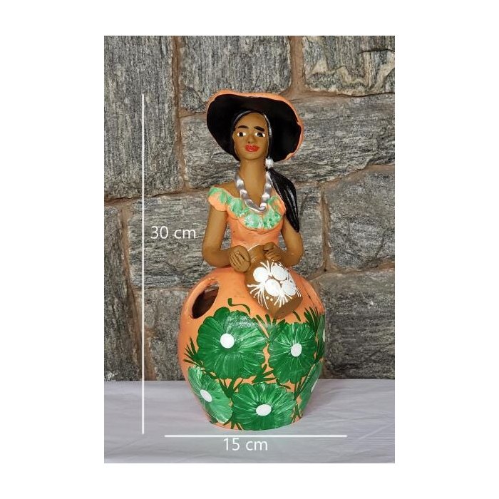 Boneca Em Cerâmica 30 Cm Artesanato Laranja