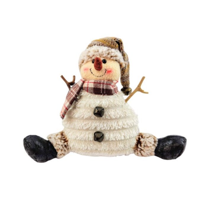 1 Boneco de Neve Sentado de franjas Branco e cachecol xadrez de Gorro