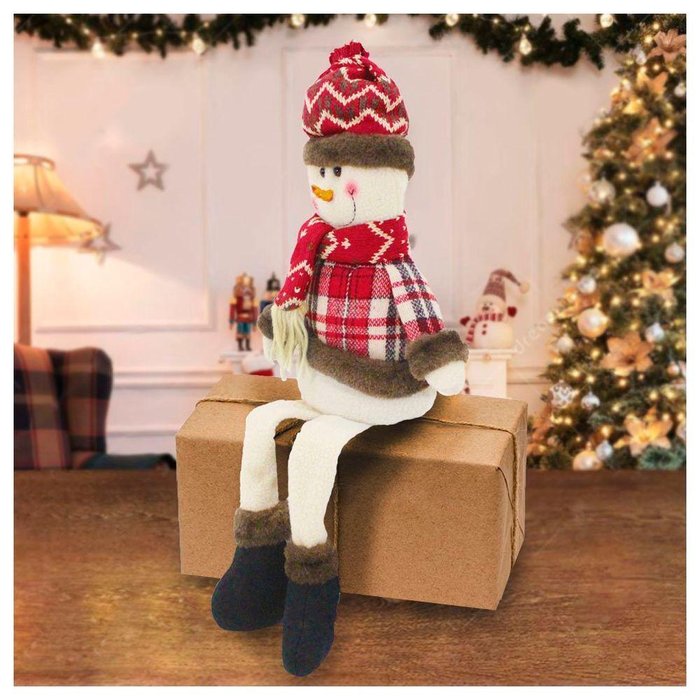 Boneco De Neve Sentado Natal Perna Mole Em Tecido 56cm