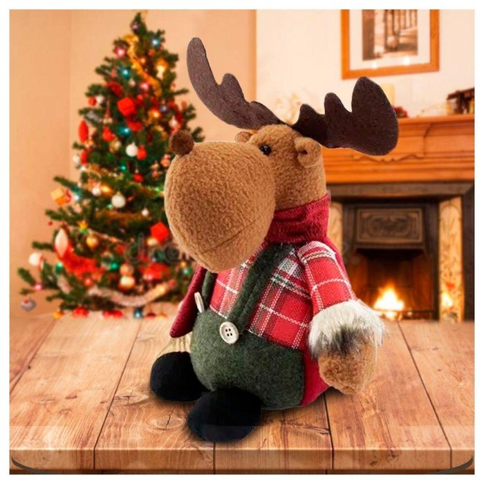 Boneco Natal Decorativo Rena Tecido Xadrez 22cm