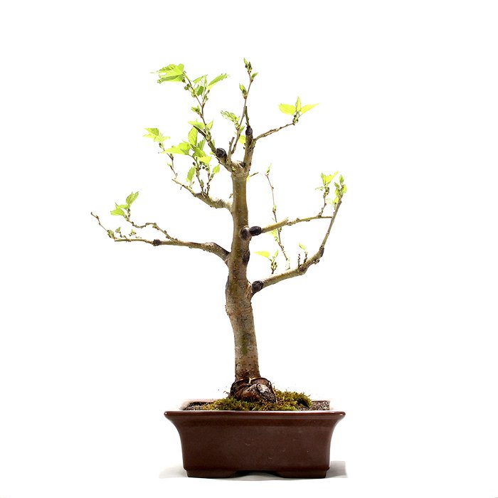A amoreira é a árvore que alimenta os famosos bichos da seda, tendo aparecido há 2.700 anos A.C. Alcança uma altura de aproximadamente 15m, e tem como peculiaridade a longevidade, podendo viver até 500 anos. As espécies apresentam formas distintas, segundo a variedade, com folhas alternadas, bordadas de grandes dentes, lobuladas de cor verde claro, brilhantes por cima. Têm coloração amarelo-dourada no outono e em climas mais frios chega a perder completamente a folhagem. Como bonsai de amora o grande atrativo desta espécie fica por conta dos frutos saborosos de cor branco rosado que quando maduros tornam-se quase pretos. A frutificação é muito abundante e ocorre várias vezes ao longo do ano. Ambiente de cultivo Todo bonsai deve ser cultivado preferencialmente a pleno sol, porém, esta espécie desenvolve-se bem em ambientes internos desde que esteja junto a uma janela que possa ser aberta diariamente fornecendo iluminação e ventilação, tendo em vista que a planta necessitará de 2 a 4 horas de sol por dia. Esta espécie não tolera geadas, devendo ser protegida neste caso.