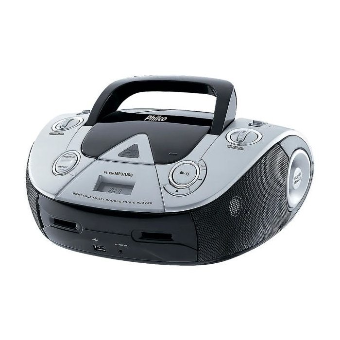 Boombox Áudio Pb126 Mp3 USB Cd Player Philco Bivolt Preto com Prata