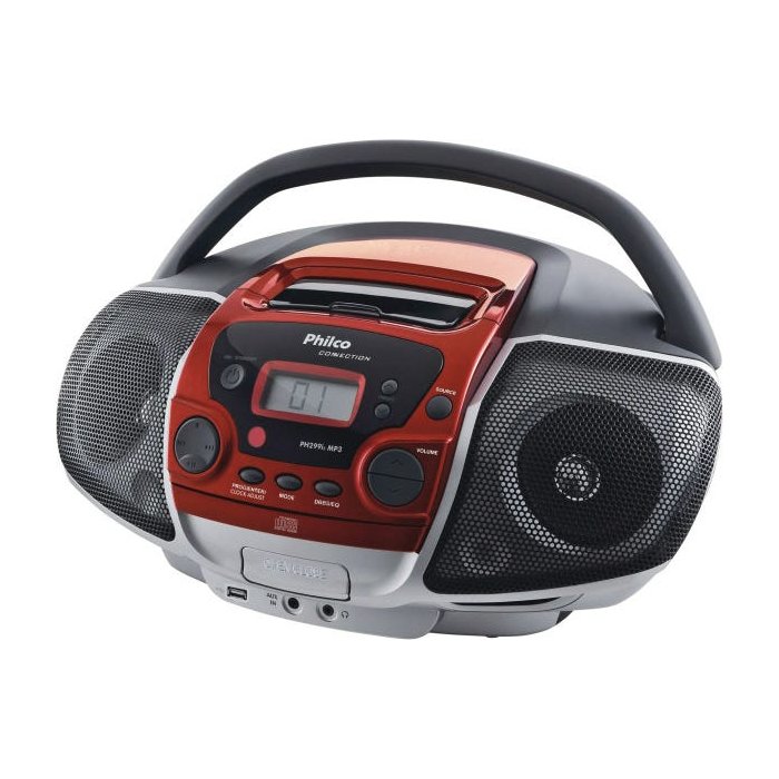 Boombox Ph299I2 USB 2.0 Mp3 Bivolt Philco Bivolt Cinza, Prata e Vermelho