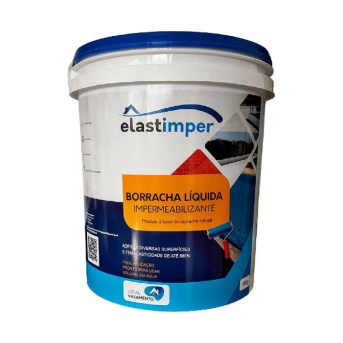 Impermeabilização - A borracha líquida Elastimper se adapta a diversas superfícies, sem fissuras ou rasgos. Isolamento térmico e acústico - Reduz em até 32% a temperatura da superfície (branco), o que diminui o uso de ar-condicionado e o gasto com energia elétrica. Reduz em até 98% ruídos causados pela chuva em telhados. Principais características: Produto à base de água, ecologicamente correto (não inflamável e atóxico). Acompanha as dilatações do substrato, não apresentando trincas ou estrias na superfície, mesmo sob o sol. • Alto poder de recobrimento devido à elevada quantidade de sólidos (65%) e elasticidade de até 650%. • Adere aos mais diversos substratos. • Boa resistência química a ácidos e álcalis. • Antiderrapante, antiestático, antialgas, antifúngico e antitérmico. • Permite assentamento de cerâmica diretamente sobre a borracha e com a borracha. A secagem acontece em 30 minutos em média, dependendo do clima. A cura total se dará em 72h. A área deve permanecer isolada e livre de contato mecânico por este período. Importante: O Elastimper não deve ser usado em locais sujeitos a pressão negativa. Ficha técnica - cor: cinza - Peso líquido: 18 - Tempo de secagem: 30 minutos - Superfícies aptas: Tetos - Tipo de base: Aquosa - Acabamento: Fosco - Rendimento: 15 M2 - Ambientes: Exterio