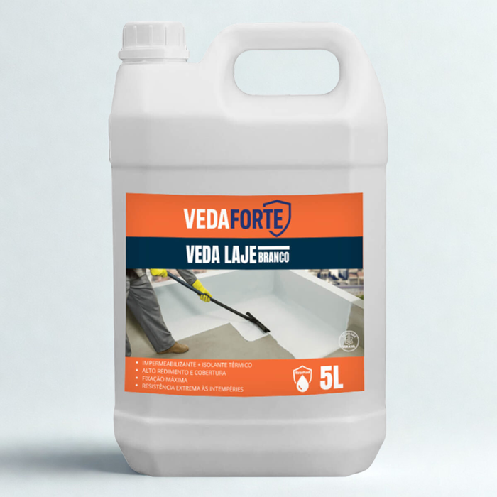 O Veda Laje Branco é um impermeabilizante líquido de base acrílica com ação isolante térmica, desenvolvido para oferecer proteção contínua e durável contra infiltrações e intempéries. Aplicado a frio, pronto para uso e moldado no local, forma uma película contínua, elástica e impermeável, capaz de resistir à pressão de água sobre lajes e coberturas. Possui secagem ultrarrápida, alto rendimento e excelente cobertura, além de ser ecologicamente correto, isento de amoníaco e com ação fungicida. Ideal para quem busca máxima fixação, resistência extrema ao clima e aumento da vida útil da estrutura e da pintura.