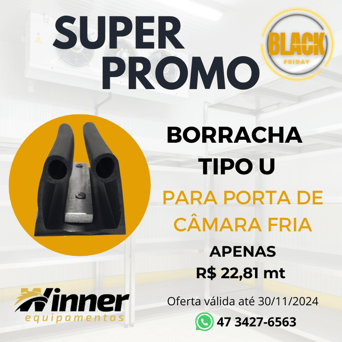 Borracha Vedação Gaxeta para Porta de Câmara Frigorifica Tipo U 1 Metro - Betipou