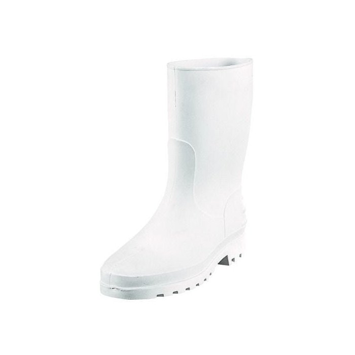 Bota Borracha Impermeável Chuva Motoqueiro Galocha Branca PROTEÇÃO: • Resistente às operações com água e lama; • Desenho da sola (tratorado) ajuda a não acumular sujeira. CONFORTO: • Produto sem forração = fácil limpeza interna. DURABILIDADE: • Indicado para funcionários temporários. AMBIENTES INDICADOS: • Cozinha industrial, laticinio, ordenha, sem contraste de temperatura, sem químico, pouco contato com sangue, pisos estáveis, sem plataforma, trabalhos leves, trabalhos temporários. DESCRIÇÃO: • Calçado ocupacional tipo bota cano médio, sem forração interna, tipo impermeável, de uso profissional, confeccionada em policloreto de vinila (PVC), injetado em uma peça só. INDICAÇÃO DE USO: • Proteção dos pés do usuário contra riscos de natureza leve, contra agentes abrasivos e escoriantes e contra umidade proveniente de operações com uso de água. Observação: I) Calçado com resistência ao escorregamento em piso de cerâmica contaminado com lauril sulfato de sódio (detergente) (SRA). Código: CMB 510 S/F CA: 37.765 Validade: 03/04/2019 Simbologia: OB, SRA Normas Técnicas: ABNT NBR ISO 20344: 2015 / 20347: 2015 Altura de Cano: 27,5 cm / Cano Médio Peso Médio*: 1,36 Kg Espessura Desenho Solado: 4,5 mm Superfície do Cabedal: Fosco Forração: Sem meia Cor Cano: Branca Cor Sola: Branca Caixa: 10 pares Embalagem: Sacola plástica Tamanho da caixa: 57x48x32 (C x L x A) NCM: 6401.9200 Numeração; 35/6, 37/8, 39/0, 41/2, 43/4