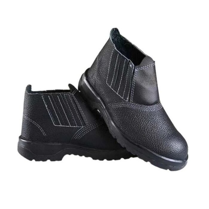Botina de segurança confeccionada em couro bovino tipo raspa, solado monodensidade, palmilha costurada diretamente no cadebal.