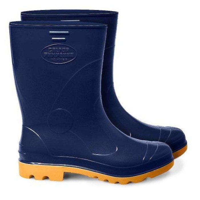 Bota Industrial Azul / Amarela Cano Médio - Calfor Pampeana Medidas do Solado : 34/5 - 24 cm 36/7 - 25 cm 38 - 26 cm 39 - 27 cm 40 - 27,4 cm 41 - 27,8 cm 42 - 28 cm 43 - 29,4 cm 44 - 30 cm 45 - 30,6 cm 46/7 - 31,7 cm Especificações Técnicas Norma Técnica: ABNT NBR ISO 20347:2008 / NR 6 item G1 letra F C.A. emitido pelo M.T.E.: 31.224 Simbologia aplicada: OB (ocupacional básico – obrigatório) e SRA (detergente) Tipo Calçado: ocupacional tipo bota Classe II (impermeável) Material aplicado: Policloreto de Vinila (PVC) com borracha nitrílica adição de plastificantes Formulação: Desenvolvida por Calfor® Altura média do cano: 26 cm Solado: 4,5 mm – desenho antiderrapante Interior: Malha de poliéster 100% Superfície cabedal: “Espelhada” Confec&