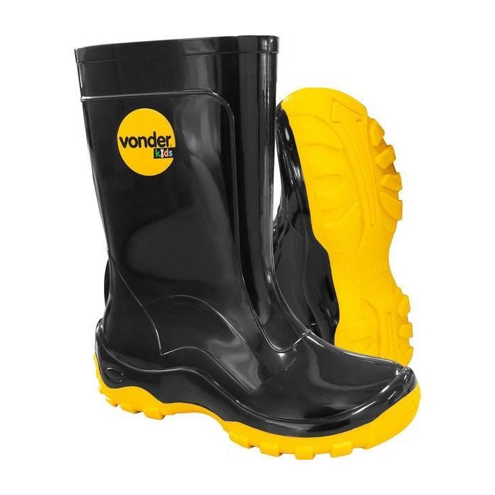Bota Infantil Preta e Amarela Pvc com Forro Tam. 30/31 Vonder