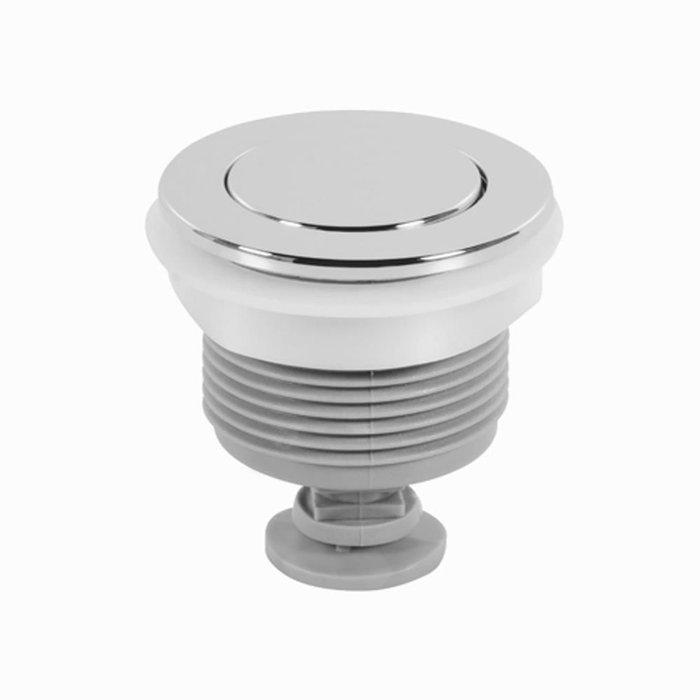 Botão de acionamento simples superior para caixa acoplada, com opções de acabamentos pigmentado e cromado.