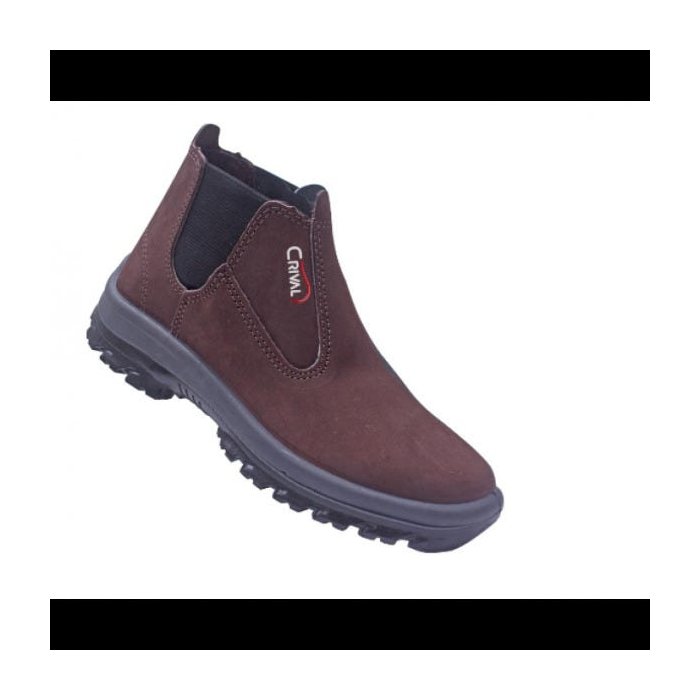 CA: 30.257 Botina produzida em couro nobuck, com fechamento em elástico, solado constituído de duas camadas de poliuretano (PU) expandido bi-densidade, injetado diretamente no cabedal, antiderrapante e palmilha antimicrobiana. Solado com absorvedor de impacto. Ideal para trabalhos na área agrícola, sendo confortável e protegendo contra riscos de impacto, cortes, compressões e perfurações de natureza leve. Altura do cano: 15 cm Norma: ISO 9001