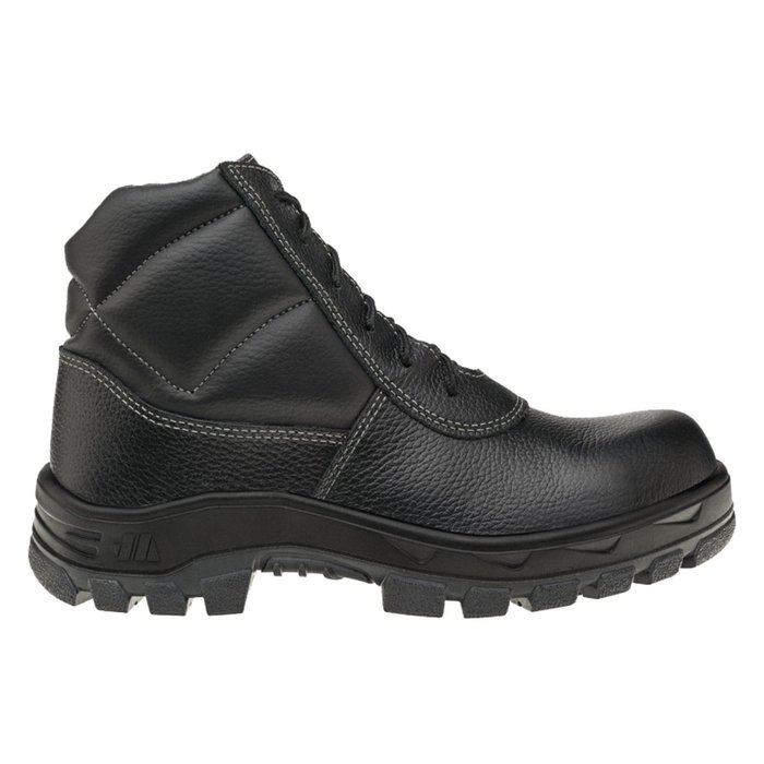 Bota de segurança com proteção mecânica, confeccionada em couro, colarinho e lingueta soft acolchoados com forração Air Comfort transpirável, fechamento em cadarço, sem componentes metálicos, com biqueira de composite leve e ultra-resistente. Palmilha de montagem resistente à perfuração, que cobre 100% da planta dos pés e solado isolante em PU bidensidade injetado diretamente no cabedal. Vantagens: Estaleiros - Madeireiras- Mecânicas - Mineração - Montadoras - Prestadoras de serviços - Siderurgia.
