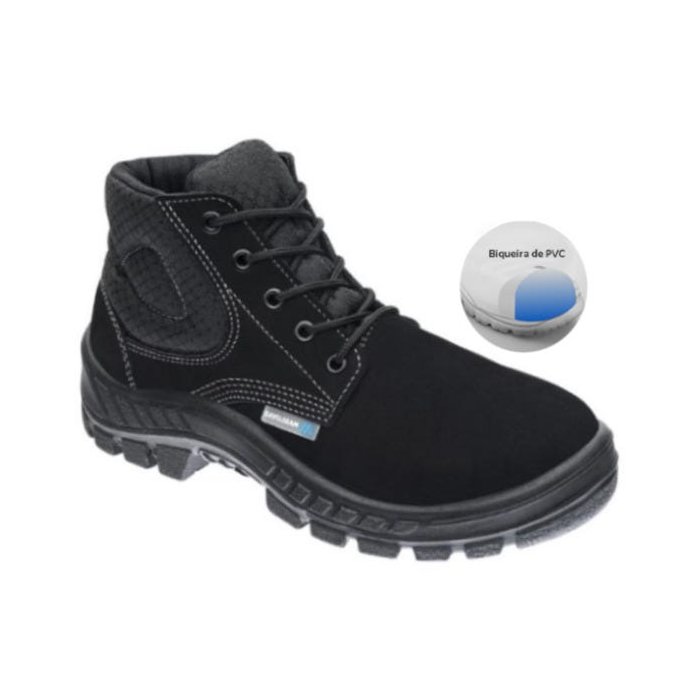 Botina Ocupacional 50B26-CB-BP Em Couro Nobuck Preto Sem Bico de Aço Marluvas CA 13808 - 43 - PR