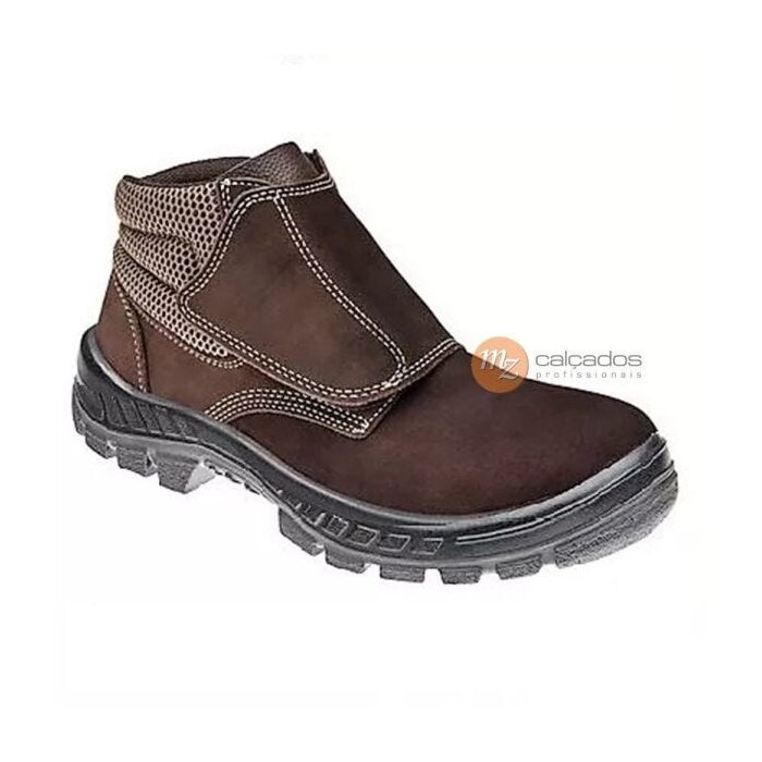 Bota de segurança confeccionada em couro nobuck. Forração em tecido respirável que proporciona maior conforto para o pé evitando atrito direto com o material do calçado. Fechamento em tecido fixador que proporciona facilidade e agilidade ao vesti-lo. Possui biqueira de plástico que é leve, antimagnética, anticorrosiva. Possui palmilha de montagem de poliéster resinado que é fixada/costurada junto ao cabedal pelo processo strobel e palmilha antibacteriana removível. Solado em PU Bi densidade bicolor com sistema de absorção de impacto injetado diretamente no solado.