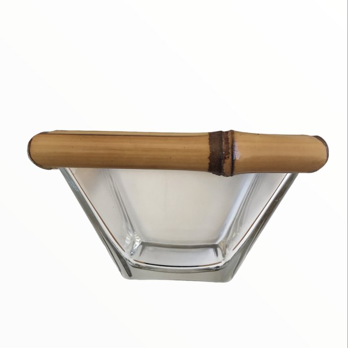 -Bowl Aperitivo em vidro com borda bambu natural, também pode ser usado para servir sobremesa, sorvete , use sua imaginação e ele terá mil usos.