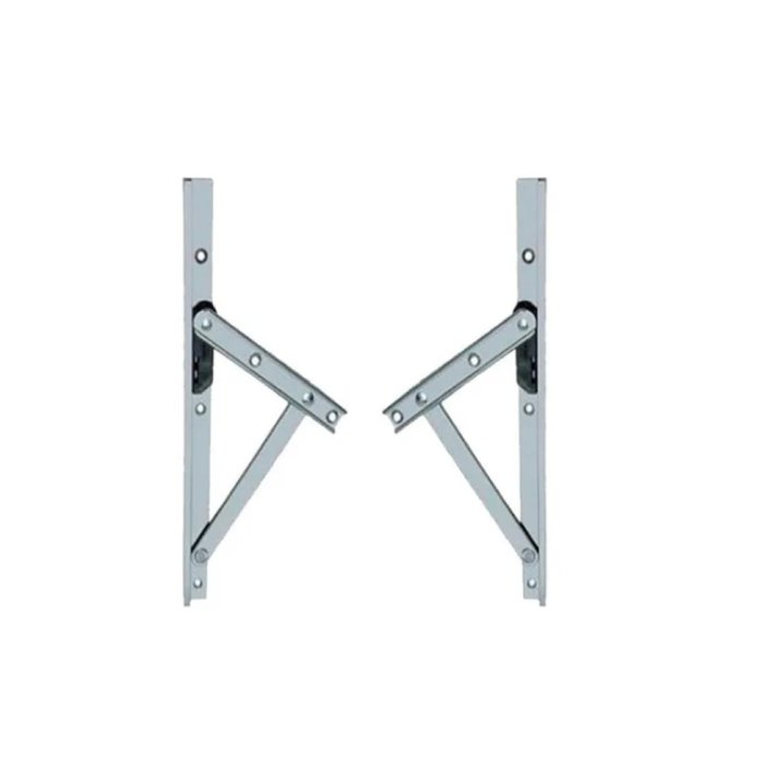BRAÇO JANELA MAXIM-AR 40CM/400MM ARTICULADO LINHA SUPREMA E/OU MADEIRA BRANCO PAR Os braços articulados são usadas em janelas maxim ar com ou sem pingadeira, tendo como requisitos básicos de desempenho: sustentação e movimentação da folha móvel durante a abertura e fechamento, vedação na parte superior da folha, manter a folha na posição desejada bem como facilitar o manuseio pelos usuários. Braço de sobrepor em alumínio para janelas maxim-ar da linha madeira ou alumínio. Freio com regulagem. Abertura da Janela até 90º - Medida: 400 mm;- Material: Alumínio;- Cor: branco;- Pacote: Par (Lado Esquerdo e Direito, Para uma Janela) - Aplicação: Para Janelas Maxim Ar aluminio ou madeira - Vide medidas nas imagens do anúncio