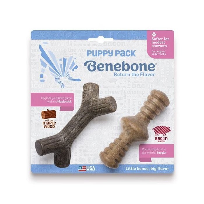 Brinquedo de Roer para Cães Filhotes Benebone Puppy 2- Pack Zaggler + Maplestick