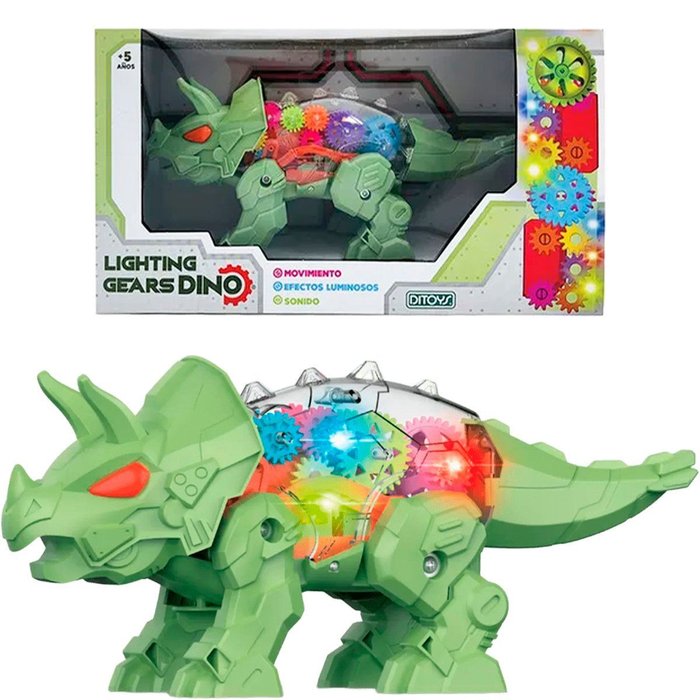 Brinquedo Dinossauro Triceratops Dino Com Luz Som Movimento Verde -