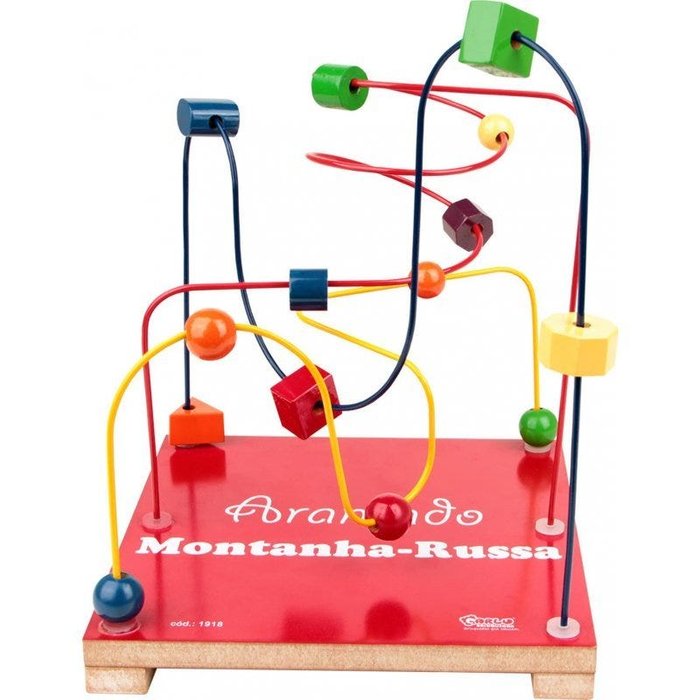 Descritivo detalhado: Brinquedo confeccionado em madeira, M.D.F. e arame.