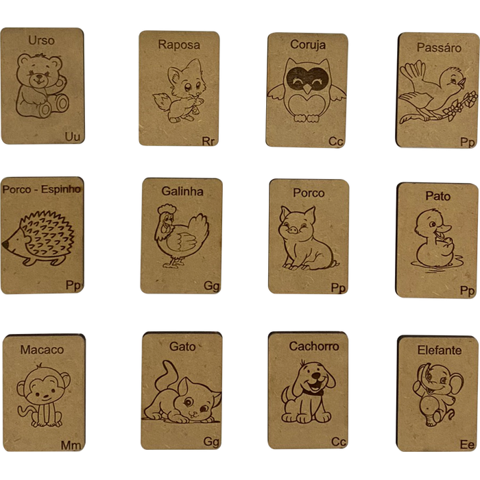 O JOGO DA MEMÓRIA ANIMAIS vem com 13 pares para as crianças aprenderem de uma forma muito mais divertida!!!É uma ótima ferramenta pedagógica, podendo ser utilizado em sala de aula ou em casa.BENEFÍCIOS:- Facilita a aprendizagem;- Aprimora o raciocínio lógico;- Aprimora a concentração;- Treina a memória de curto prazo.COMPOSTO POR: 26 peças confeccionadas em MDFDIMENSÕES DAS PEÇAS:Largura 5,6 cm Altura: 8,0 cmEspessura: 6mmCOMPOSIÇÃO: M.D.F. e madeira.Indicado para maiores de 3 anos.