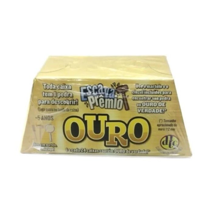 Solte o arqueólogo que existe em você com Escava Prêmio Ouro! Toda caixa tem 1 pedra para descobrir! Jaspe Negra, Cristal Rosa, Rocha Vulcânica, Jaspe Amarela, Ônix Vermelha, Olho de Tigre, cada caixa é uma surpresa. Use o martelo e o cinzel incluídos para encontrar sua pedra ou ouro de verdade.! Descubra e colecione! 1 a cada 24 caixas contém Ouro de verdade!