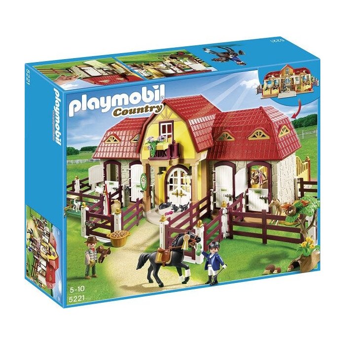 O Playmobil Grande Fazenda de Cavalos tem 4 baias de cavalos e espaço de armazenamento no sótão. A grande área cercada ao redor do pônei é perfeita para alimentar e exercitar os cavalos. O conjunto inclui dois cavalos puro-sangue e um potro, juntamente com gatos, pássaros e ouriços. Vem completo com 2 detentores de Playmobil, 12 animais e mais de 45 acessório