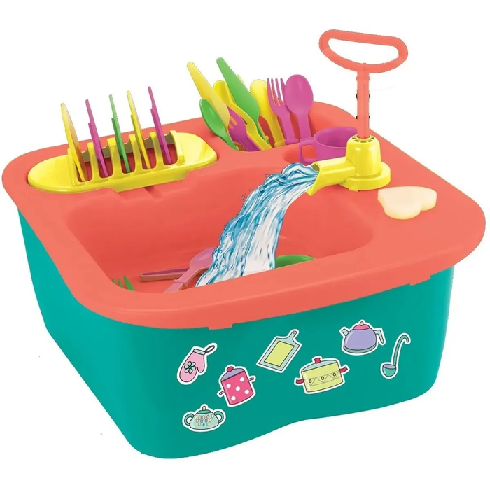 A Pia Lava Louça Infantil Acqua Brink Homeplay é super legal e vai contribuir com atividades que ajudam no desenvolvimento psicomotor das crianças. Além de super divertida, a Pia Lava Louça Infantil Acqua Brink Homeplay possui um kit com 1esponja, 1 escorredor, 3 colheres, 3 facas, 3 garfos, 3 pires e 3 xicaras, é equipada com torneira manual, deixando a brincadeira mais divertida. As crianças vão adorar! Especificações: Marca: Homeplay Fabricante: Xplast Modelo: Pia de brinquedo Acqua Brinque Funcionamento: Não precisa de pilhas Idade recomendada: a partir de 3 anos Material: Plástico Dimensões aproximadas: 36,5 x 37 x 26 Produto certificado pelo InMetro Garantia: 3 meses
