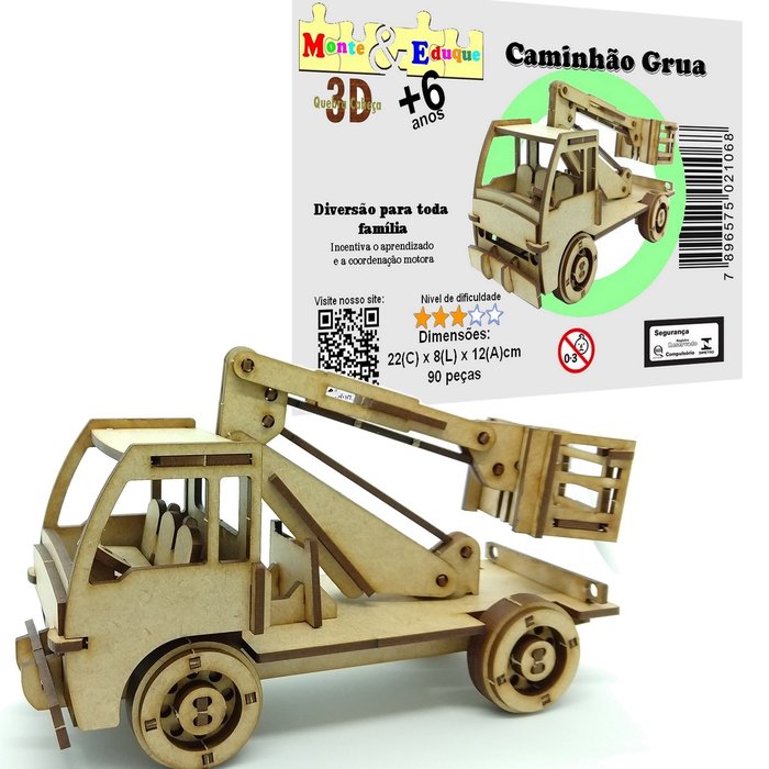 Brinquedo Quebra Cabeça 3D Caminhão Grua Mdf