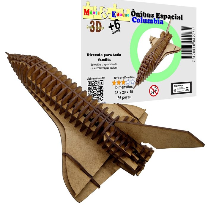 Brinquedo Quebra Cabeça 3D Ônibus Espacial Columbia MDF