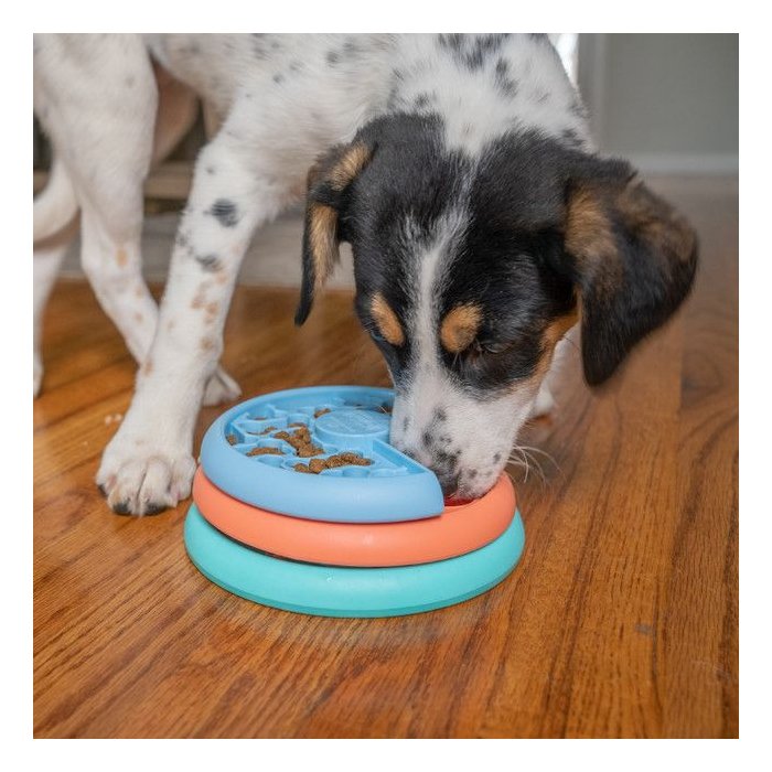 Comedouro lento misturado com quebra cabeças nível 2, que possui 3 camadas de diversão com recompensas. Perfeito no combate ao tédio porque mantém o cão ocupado e feliz. Feito com plástico de grau alimentar, sem BPA, PVC ou ftalato.