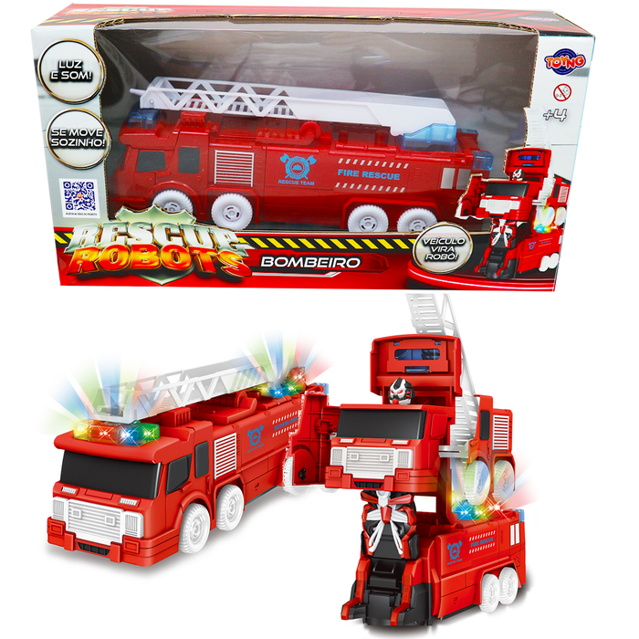 Brinquedos Caminhão Bombeiro Vira Robô Luz E Som Bate Volta Toyng:Vermelho