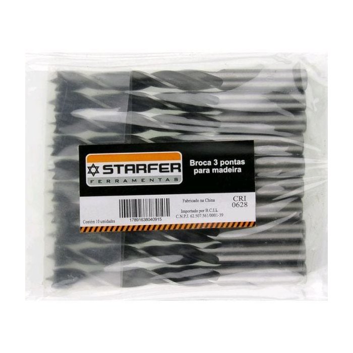 Broca 3 Pontas Para Madeira Starfer 7mm 10 Unidades