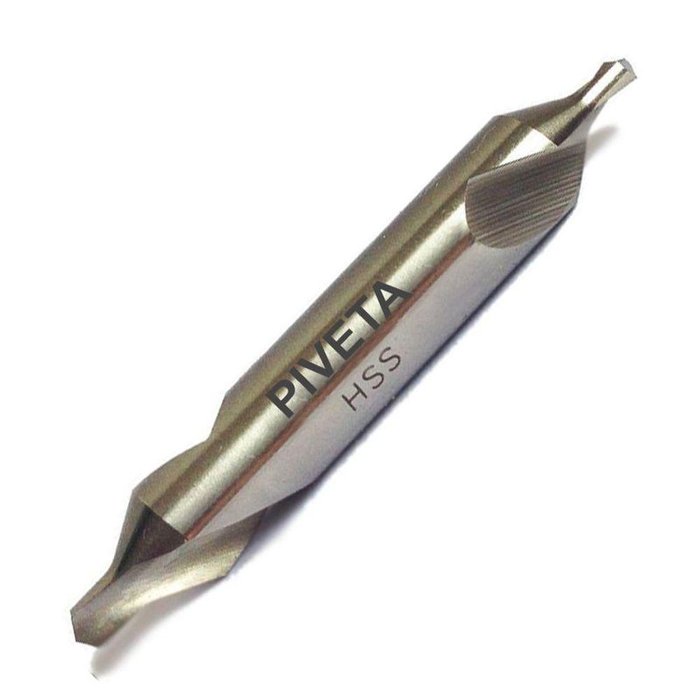 - É o tipo mais usual de broca de centrar, produzindo furos com escareamento plano de 60º. - A broca-piloto abre uma área de folga responsável por acomodar a terminação da ponta rotativa.