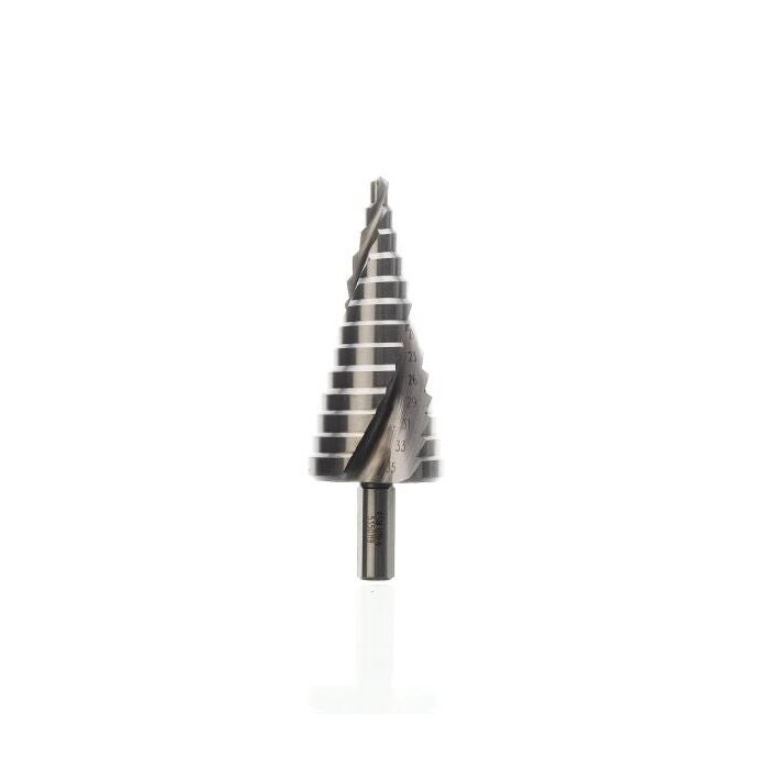 Broca Escalonada 5-35mm da linha ASM Ultra com 13 diâmetros, produto de alta resistência ideal para furação de chapas metálicas e painéis elétricos. Sua lâmina em formato espiral acompanha o sentido do corte, proporcionando mais velocidade e precisão. Adaptável em parafusadeiras ou furadeiras elétricas manuais ou de bancada. Base de alta resistência de 3/8'' de diâmetro com superfície facetada. Ponta centralizadora de alta resistência. Para aumentar a vida útil da ferramenta lubrifique durante o uso. Utilize equipamentos de proteção individual (EPI) durante o uso desta ferramenta.