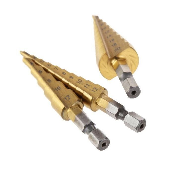 Broca Escalonada Cônica De Titânio Hss 3-20Mm - Kit 3 Peças