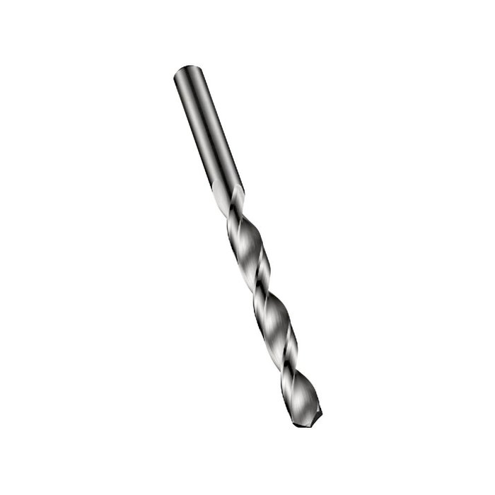 Broca com haste paralela, diâmetro 7,5mm com um comprimento total de 109mm e comprimento útil de 69mm de acordo com o padrão DIN 338 com ângulo de ponta 120°, feito em metal duro com acabamento brilhante para furação sem guia 4xD em materiais não ferrosos