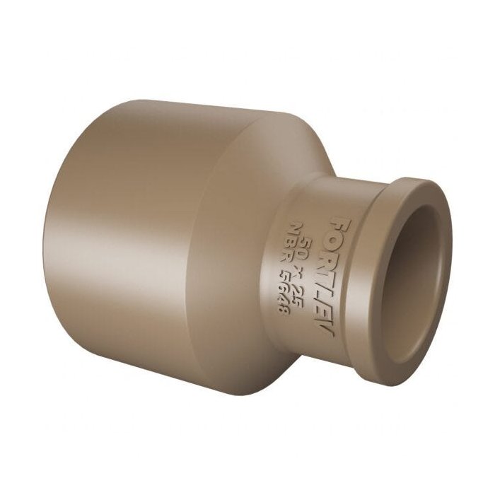 A Bucha de Redução Soldável Longa Fortlev reduz o diâmetro da tubulação soldável de água fria. Fabricados em PVC na cor marrom, suportam até 7,5Kgf/cm² ou 75 m.c.a. à temperatura de 20°C.